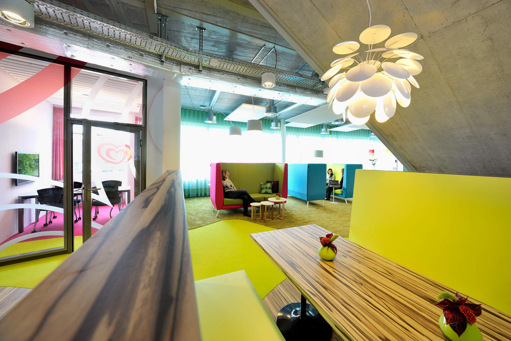 位于瑞士的聯(lián)合利華辦公室,就像天朝的兒童樂(lè)園,完全是大小孩理想中的夢(mèng)想空間。色彩的明麗跳躍與碰撞讓人全然忘乎這是個(gè)本該嚴(yán)肅莊重的辦公環(huán)境。
