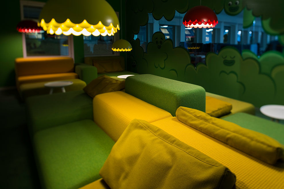 在設(shè)計師看來,這是一個他們與客戶相互影響的過程,設(shè)計團隊從 King 旗下的 200 個游戲中得到靈感,設(shè)計了這樣一個“卡通王國”,他們也希望在此工作的員工能夠在這樣一個空間中再次得到開發(fā)游戲的靈感。