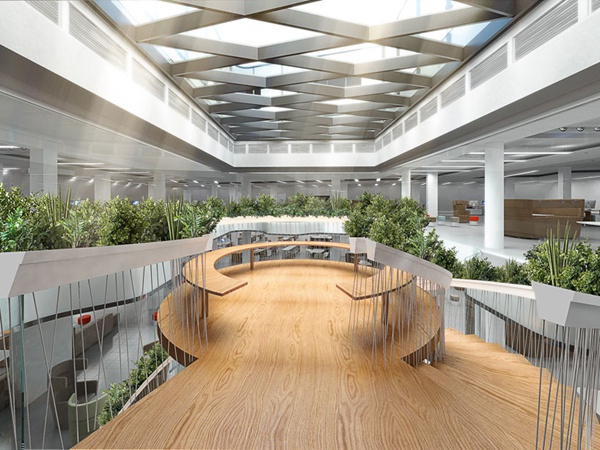 樓梯不僅僅是個(gè)過(guò)渡區(qū)域,還可以兼?zhèn)淦渌δ?,比如空中花園。在倫敦的一處辦公區(qū)域里,設(shè)計(jì)師把承重柱在中間的傳統(tǒng)樓梯變成螺旋結(jié)構(gòu)的The Living Staircase,沿著欄桿種滿植物,還設(shè)有圓形平臺(tái),成為可以讓上班族在此休息放松的公共區(qū)域。設(shè)計(jì)源自 Paul Cocksedge Studio。